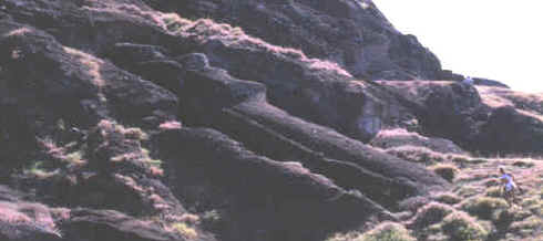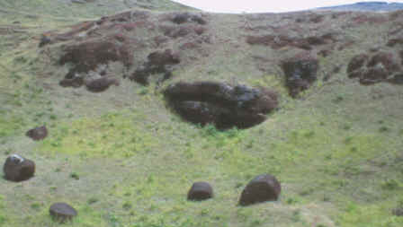 statue quarry Rano Raraku. Some had intricate carving on them with notches