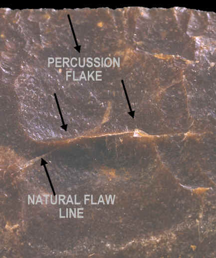 The largest Aztec bifaces were made out of a semi-translucent amber colored chert. This material was ideal for making large bifaces because of it's natural tabular form. Some bifaces still have small patches of the outer cortex on both sides, indicating that it was tabular chert. Tabular chert is found in limestone or chalk formations. |