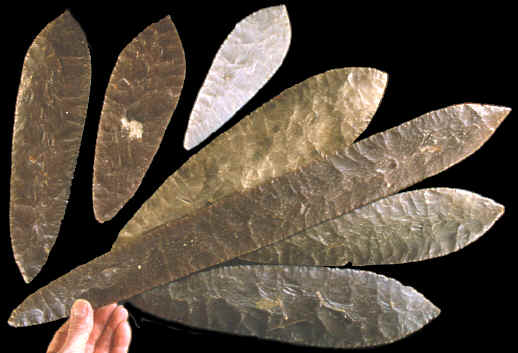 Aztec bifaces have no competition when it comes to a mythological background, cultural drama and skilled craftsmanship. They represent some of the most skillfully flaked and artistically personified, stone bifaces ever manufactured within any Stone Age culture in the world. |