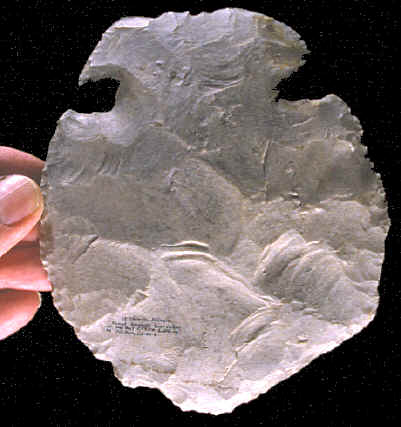St. Clair side-notched hoes represent one of the most impressive stone tools that were produced by Mississippian craftsmen. Without the great numbers of hoes that were manufactured in the Mill Creek quarries, Cahokia may not have been the great city that it was. The availability and utilization of natural resources was just as important in ancient times as they are in today's modern society. |
