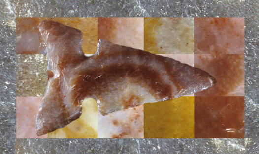Cahokia "gem points" have been impressing people for as long as farmers have been picking them up in their cultivated fields on the Cahokia Mounds site. Their bright colors set them apart from other arrow points found in this area in southern Illinois. Cahokia "gem points" have been highly regarded by collectors for eighty years or more. People have been acquiring them from farmers and by surface collecting on the Cahokia Mounds site long before the site became a state park. No other group of arrow points have been illustrated in so many books, postcards, posters, brochures and documentaries than the approximately 130 known "gem points" from Cahokia that are still in private collections. In some ways, they have become a local legend, even to the point of giving some of them names, like "Old Redtop" or the "Barber Pole point." |