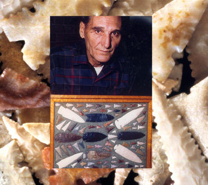 What is a Cahokia "gem point?" The precise definition can vary from person to person or in this case, collector to collector and it's obviously a collector's definition. "Gem points" are not a single type or style because they were made in a variety of styles. Triple-notched Cahokia "gem points" are the most common form. The rarer types are triple-notched serrated, serrated and various multi-notched forms. There is no doubt that the more colorful points are what people think of as "gem points." But since the majority of all Cahokia points are thick and fairly crude, the term "gem point" may also include all of the very finely made Cahokia points, since they are so rare. There are actually many more Cahokia "gem points" in collections across the country if you consider all the "modern-made" examples. Some flintknappers can make them as well or even better than the old points. Gary Merlie is one of these very skilled replicators of Cahokia "gem points." |