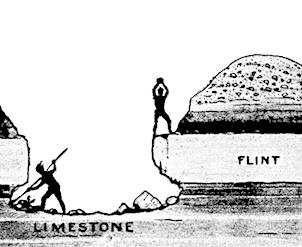 Holmes describes the ancient process of mining flint at Flint Ridge from an excavation of one pit and observations of others. He explains that first a pit was dug to the surface of the flint stratum below. But then he mistakenly explains that fire and water were used in alteration to shatter the stone until the excavation reaches a depth that allowed them to work with sufficient room. Other archaeological excavations of pits have not shown any evidence of the use of fire to mine through the flint and limestone stratum. Roy also has not seen any obvious use of fire in any of his excavations, as explained by Holmes. Ancient miners were most probably extracting the flint with the use of pry bars and hammerstones. |
