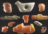 34 3-31-2001 POVERTY POINT ANIMAL EFFIGY BEADS, Colorful examples. |
